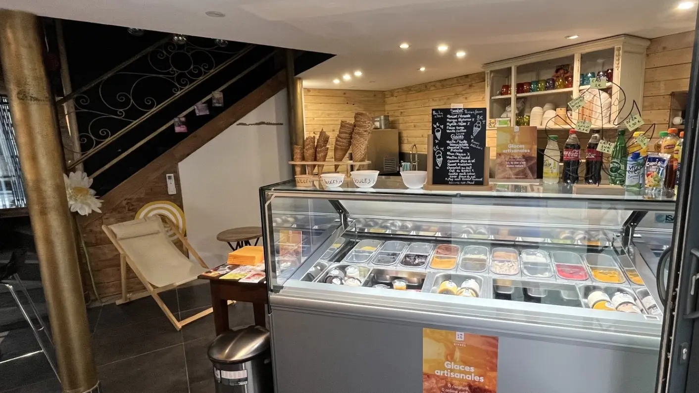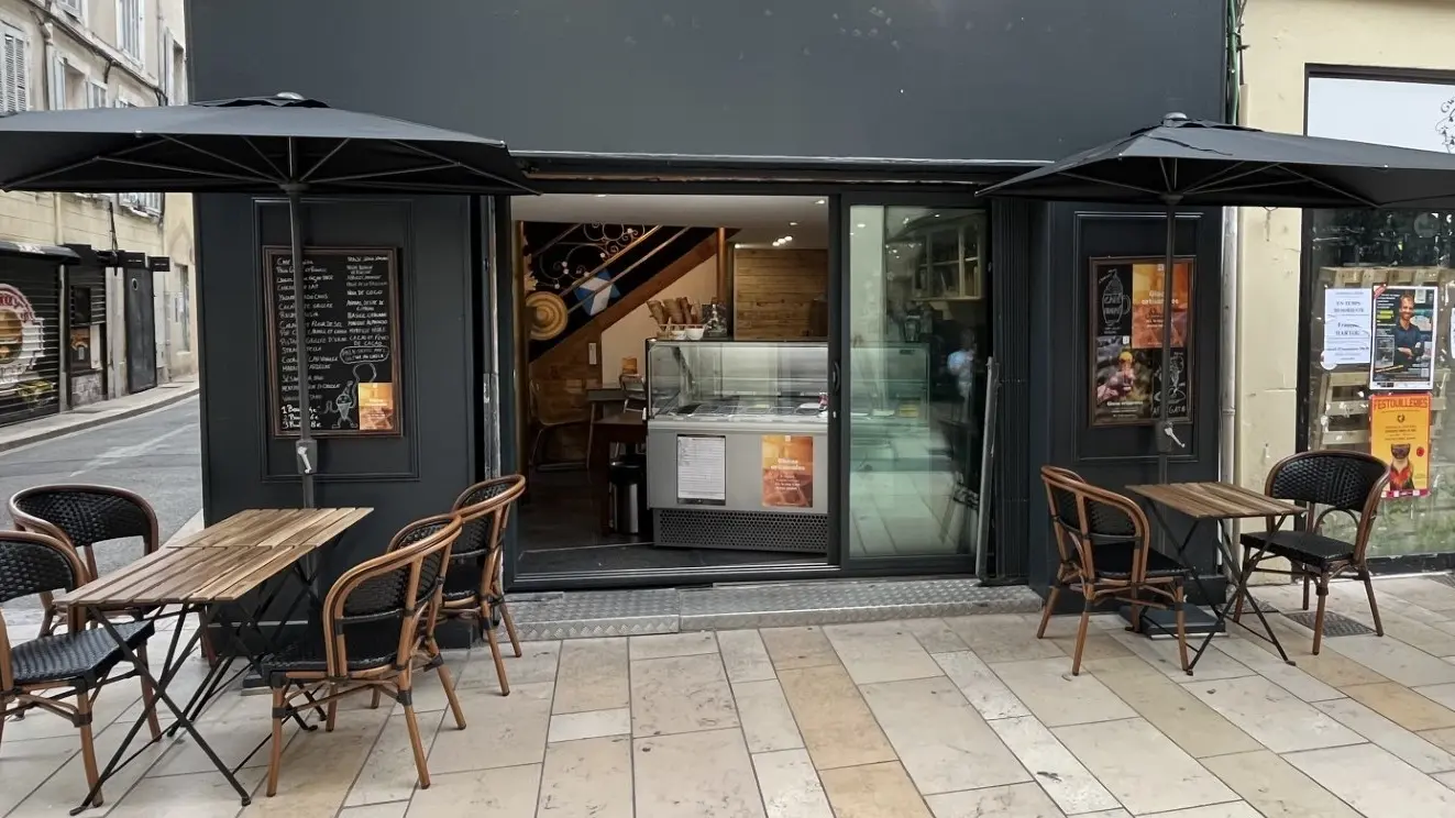 Entdecken Sie einen freundlichen und eleganten Ort, an dem der Charme von Holz und Schmiedeeisen eine warme und moderne Atmosphäre schafft. Diese Eisdiele ist neu in Avignon und bietet Ihnen eine Auswahl an handwerklich hergestelltem Eis von La Fabrique Givrée, das für seine leckeren und kreativen Rezepte bekannt ist, sowie das 100% biologische Eis von Terre Adélice, das Qualität und Authentizität vereint.