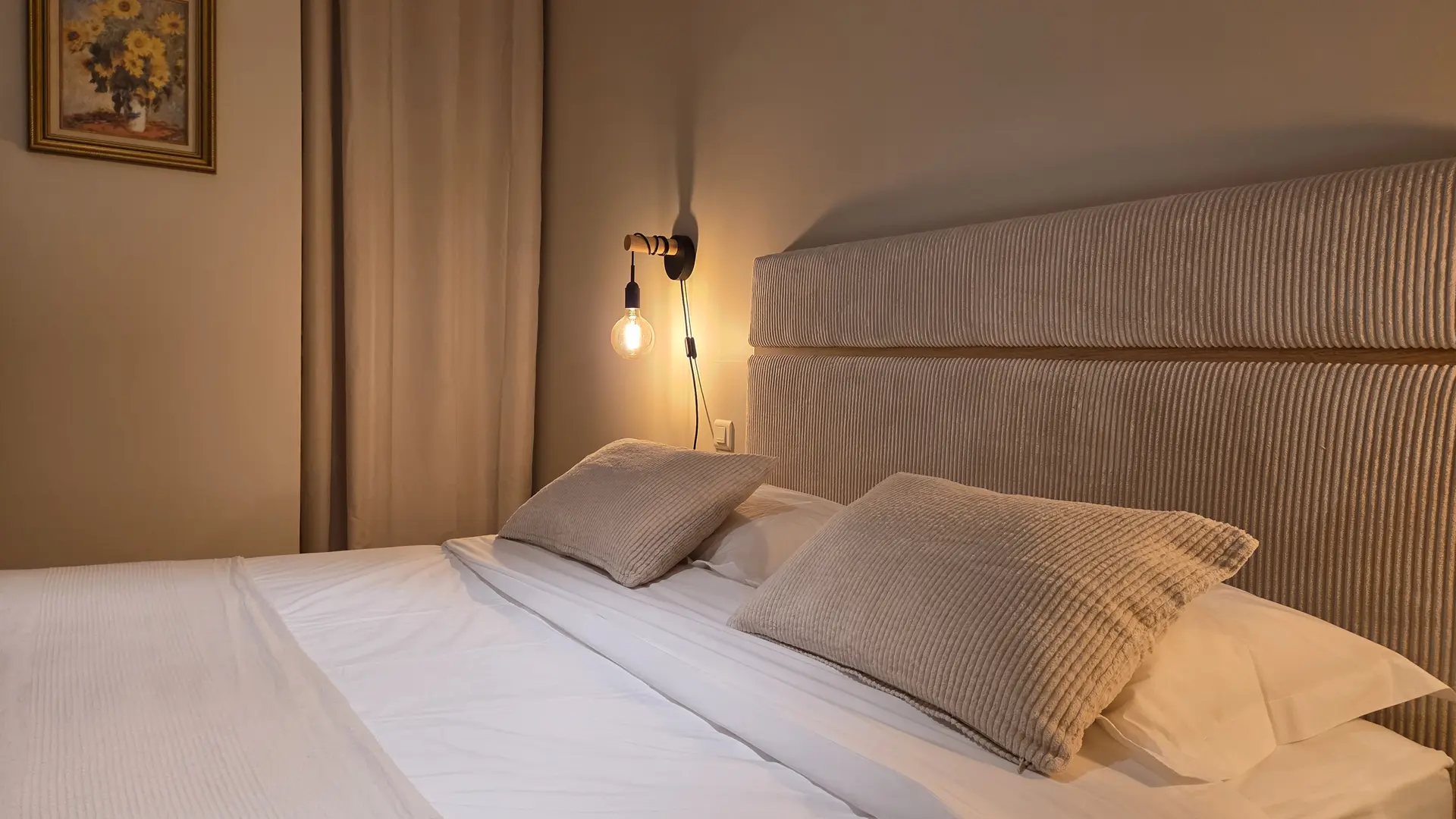 Hübsches Gästehaus in der Nähe der touristischen Highlights. 5 Zimmer mit Heiz-/Kühlanlage, Bad, separatem WC, Flachbildschirm-TV und kleinem Kühlschrank.