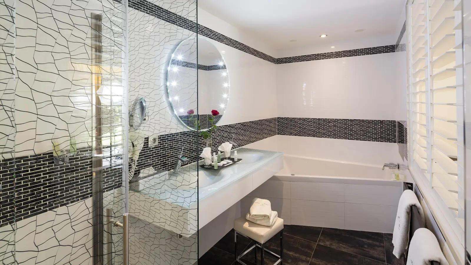The highlight of this privileged location? A marvellous Spa featuring indoor pool, Jacuzzi, sauna, steam room, chromotherapy shower, fitness room, hydromassage beds, double and individual massage cabins, private Jacuzzi, Hormeta beauty treatments, herbal tea room and relaxation room.