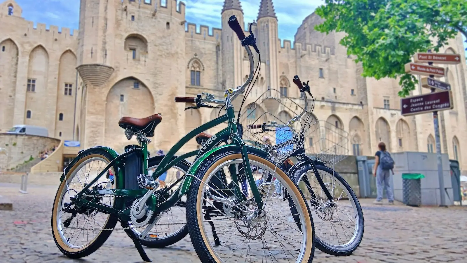 Discover Avignon and the surrounding area with AXIBIKE: rental of electric and classic bikes, mountain bikes and city bikes. GPS routes, personalized advice, accessories included and family options for exploring the region in total freedom.