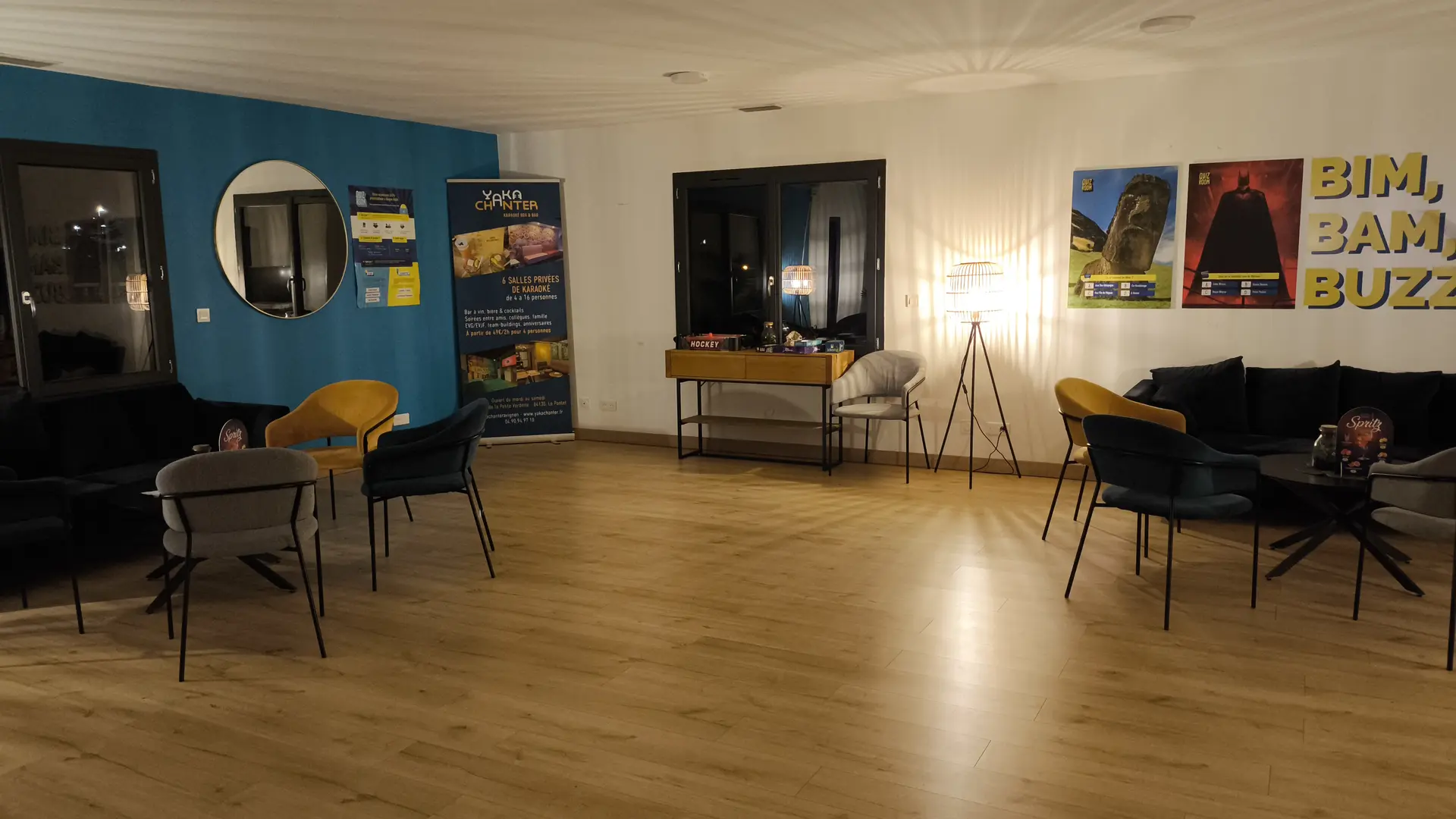 BIM BAM BUZZ! The first immersive quiz rooms in Avignon. Quiz Room is a TV-style quiz room, with up to 18 people playing live, so you can have fun together.