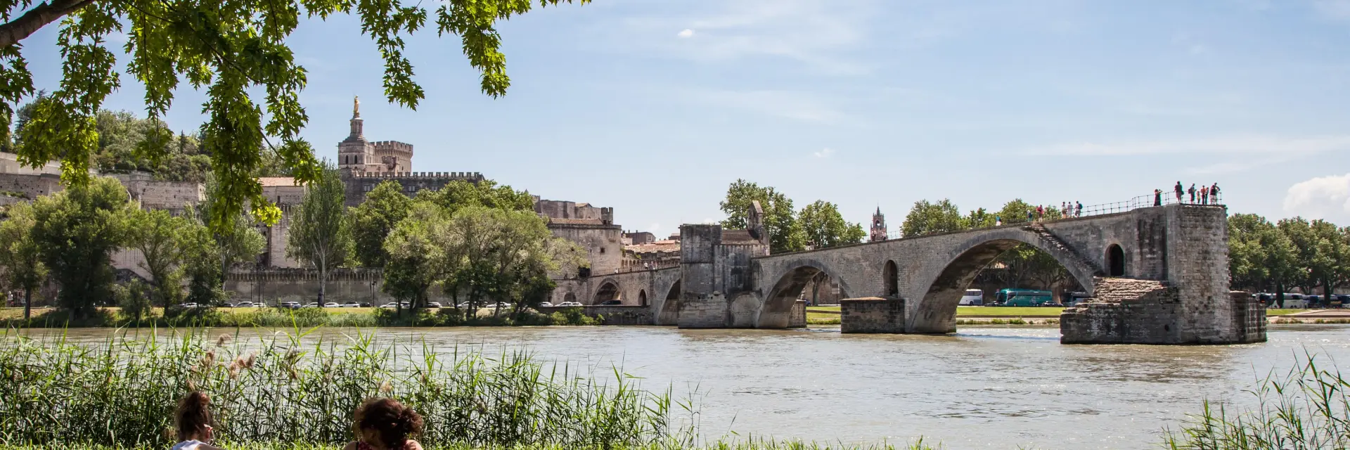 Vista del Pont Saint-Bénezet (o Pont d'Avignon) e del Palais des Papes dall'Île de la Barthelasse - Foto: Frédéric Dahm / Empreintes d'Ailleurs