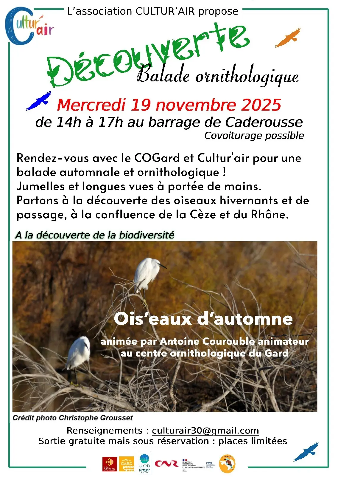 Réservation par mail à culturair30@gmail.com. Places limitées.