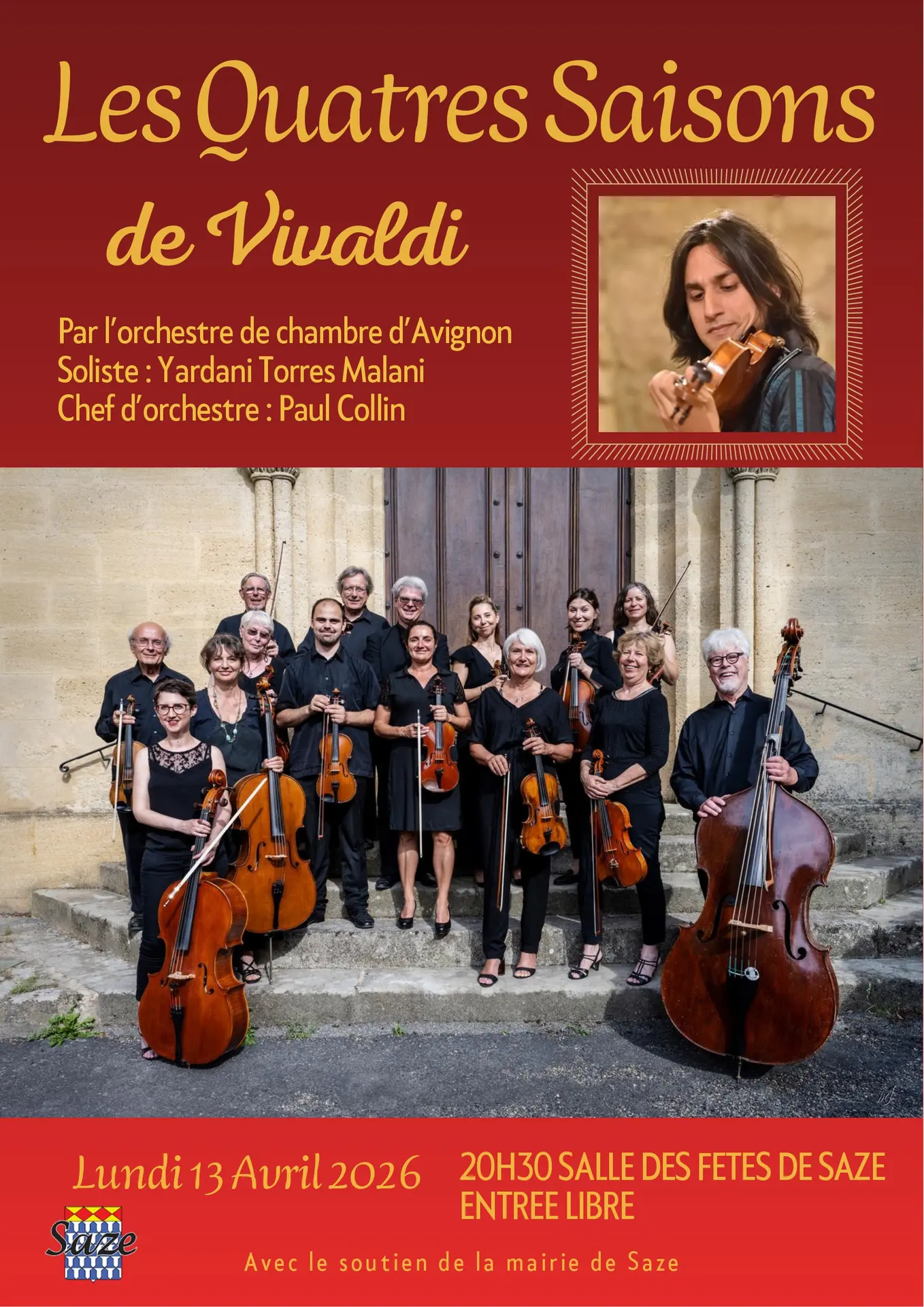 Concert proposé par l'orchestre de chambre d'Avignon. Soliste : Yardani Torres Malani. Chef d'orchestre : Paul Collin.