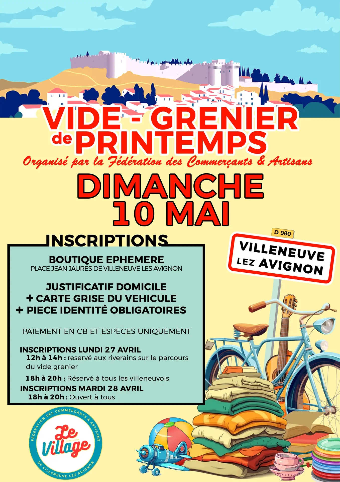 Villeneuve lez Avignon s’anime ! La Fédération des Commerçants et Artisans organise son vide-grenier dans le centre historique. Venez chiner des trésors inattendus et vivre une journée festive au cœur de la ville.