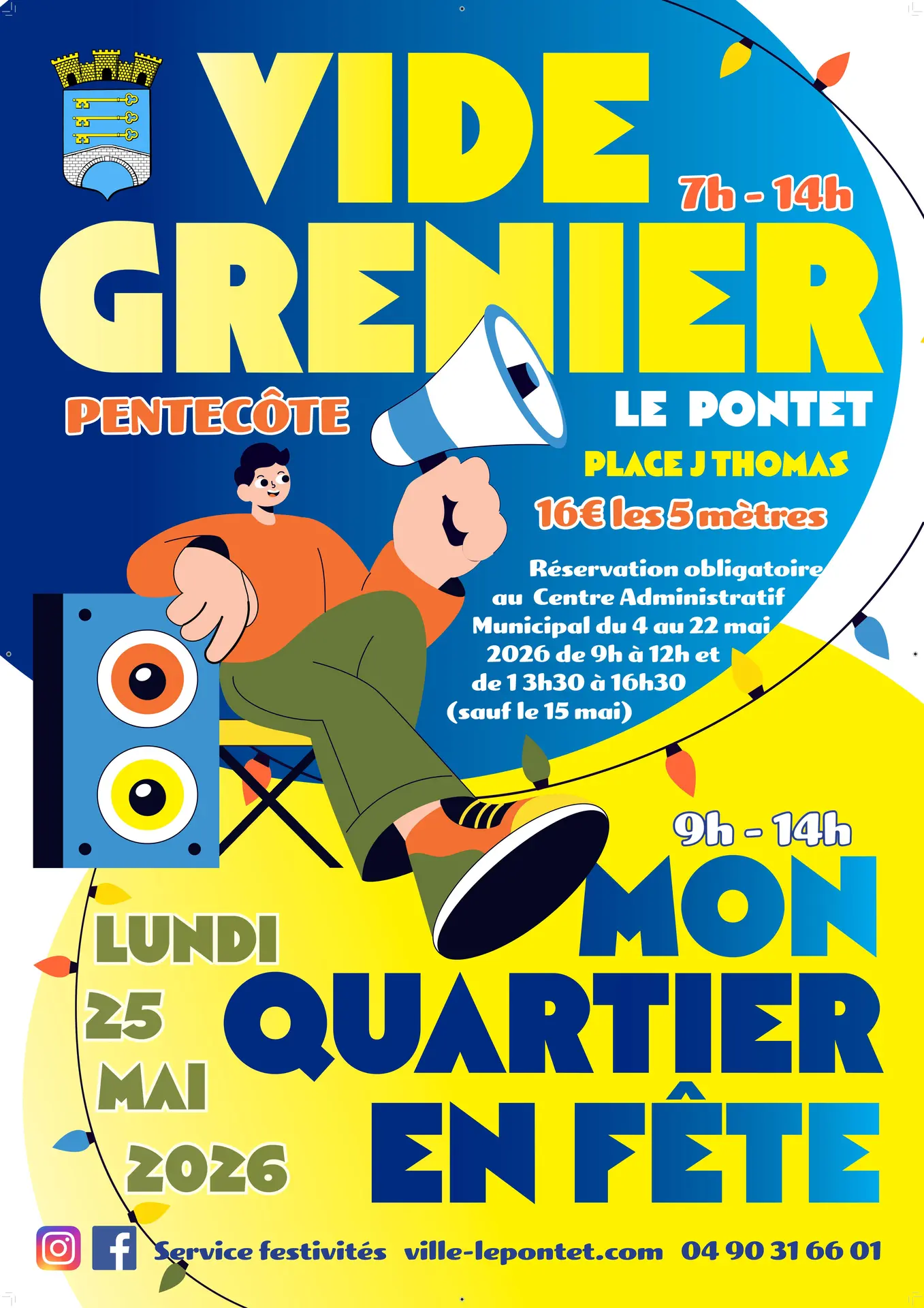 Pour les particuliers exposants : Réservation de l’emplacement en personne sur plan, au Centre Administratif Municipal du 4 au 22 mai 2026 de 9h à 12h et de 13h30 à 16h30 (sauf le 15 mai) 16€ les 5 mètres linéaires.
