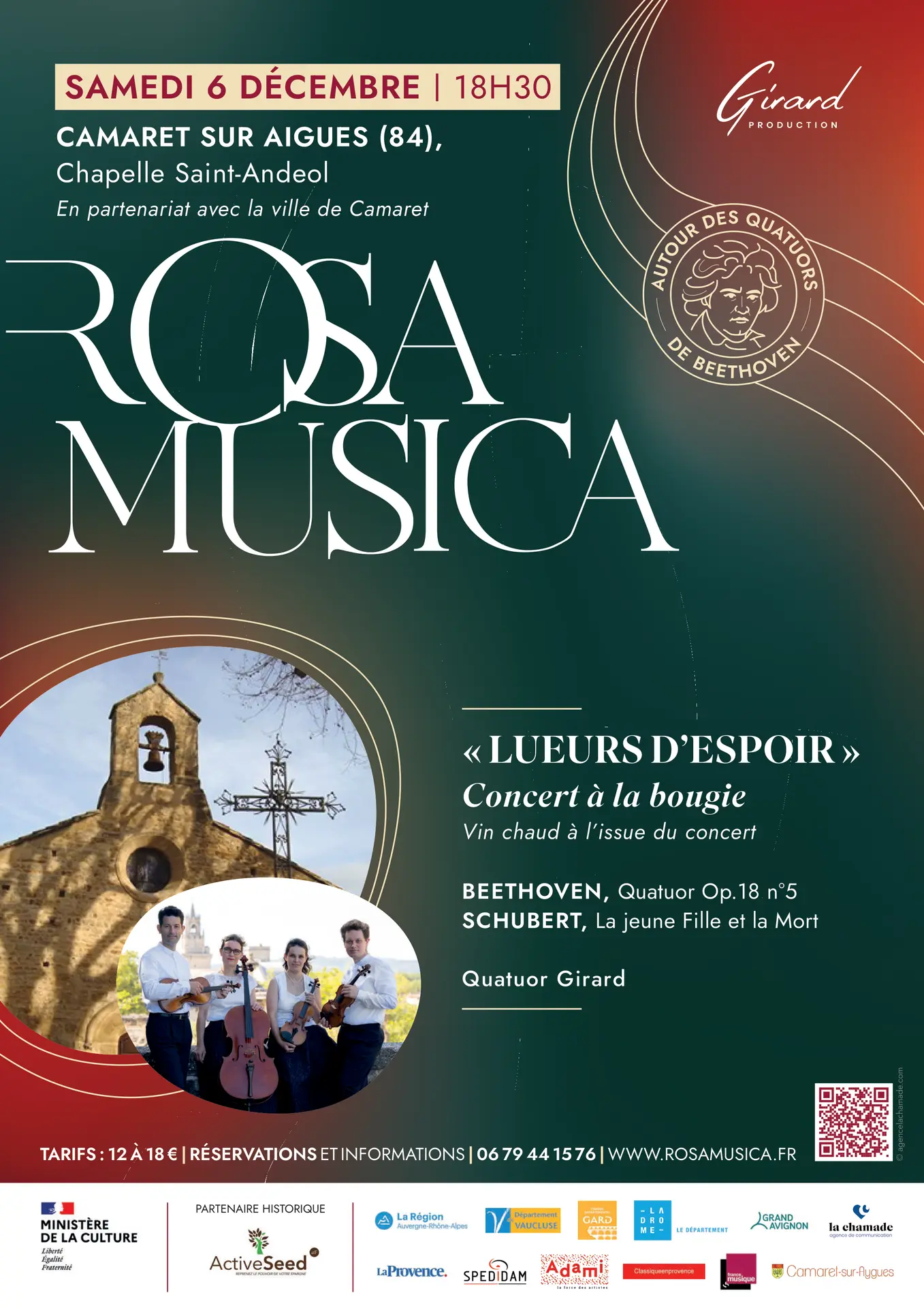 À travers l’écoute du célébrissime Quatuor « La Jeune fille et la Mort » de Schubert et d’un étincelant Quatuor de jeunesse de Beethoven qui pourrait sonner comme un hommage à Mozart, nous pourrons faire cette bouleversante expérience de toucher à l’indicible grâce à l’universalité du langage musical…