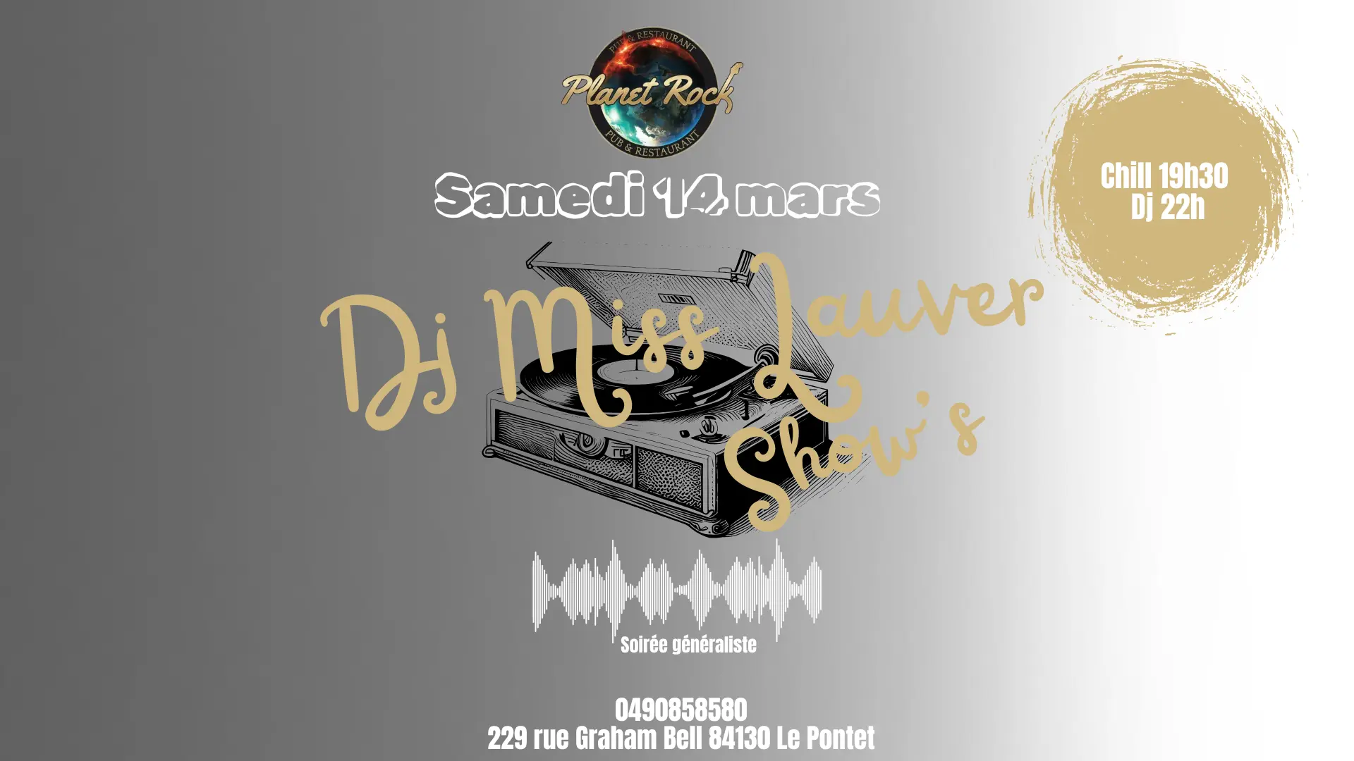La djette Miss Lauver vient faire son show’s pour vous faire danser toute la soirée. Dans une ambiance généraliste en passant des années 80 à aujourd’hui, il y en aura pour tous les goûts.